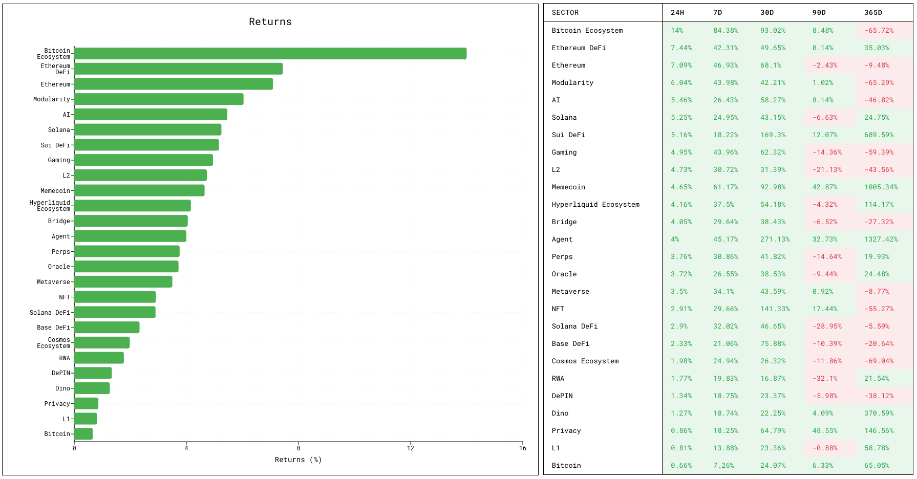 Ethereum DeFi sector is up 7.44% over the past 24 hours (EIGEN up 18.46%, ENA up 17.75%, FLUID up 9.54%).