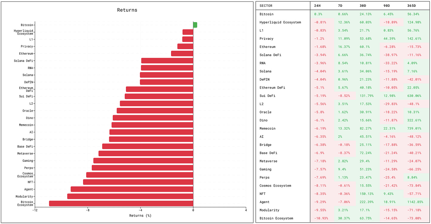 Hyperliquid Ecosystem sector is up marginally, just 0.81% (PURR down 2.89%, HFUN up 2.71%).