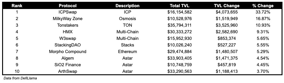 ICPSwap, DEX on ICP, TVL grew by 33.72%.