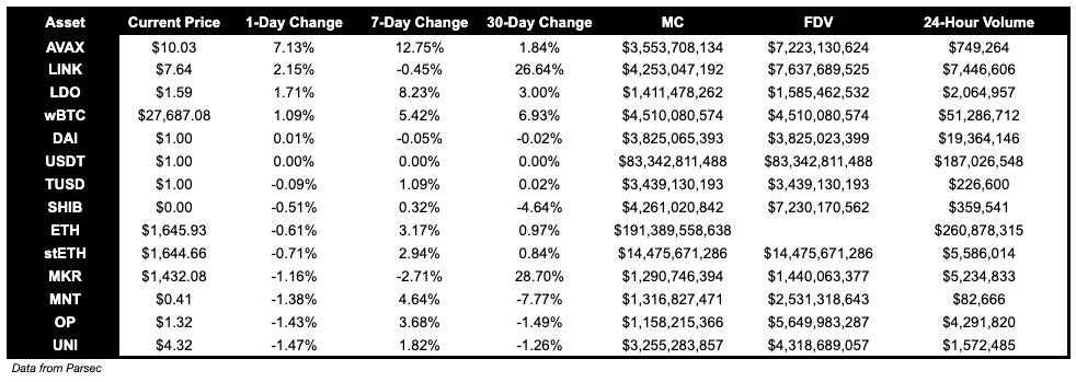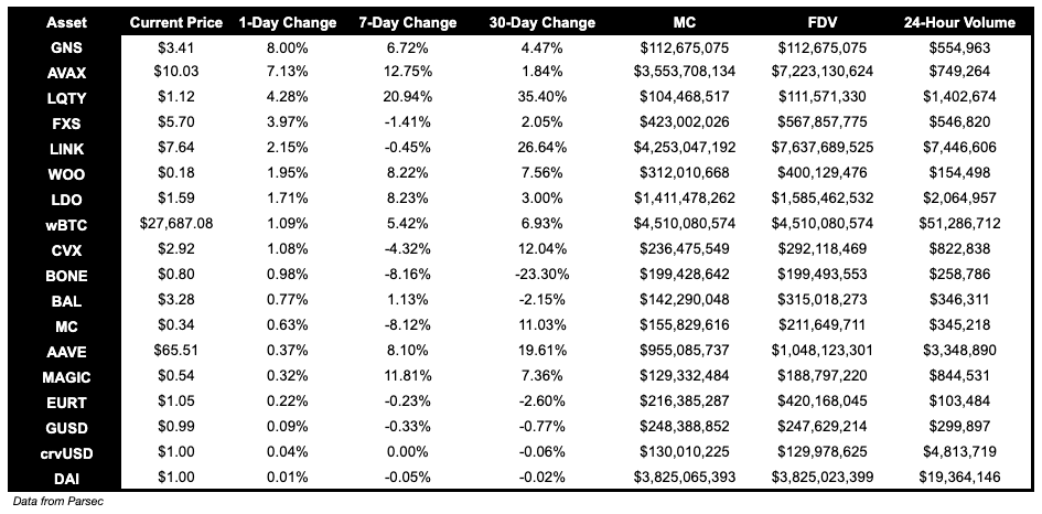 AVAX, up 7.13%, performed well, following the popularity of Star Arena - an Avalanche SocialFi platform.