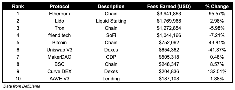 Notably, Ethereum fees earned are up 95.57% over the past day. Additionally, Curve fees earned are up 132.57% over the past day.