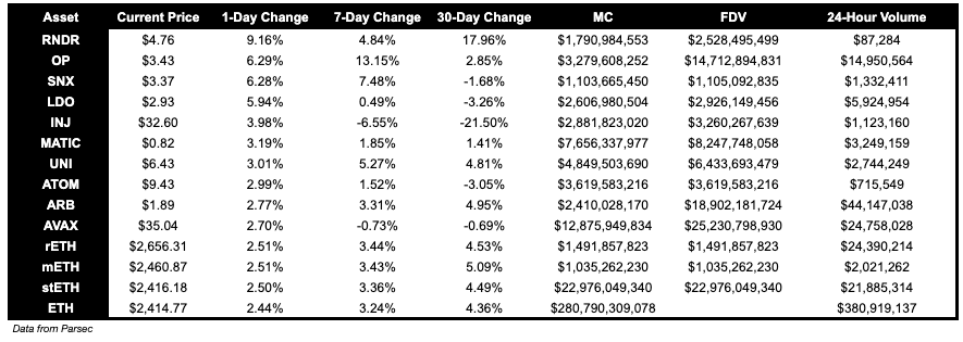 RNDR is up 9.16% today. OP, up 6.29%, and SNX, up 6.28%, had a good day.