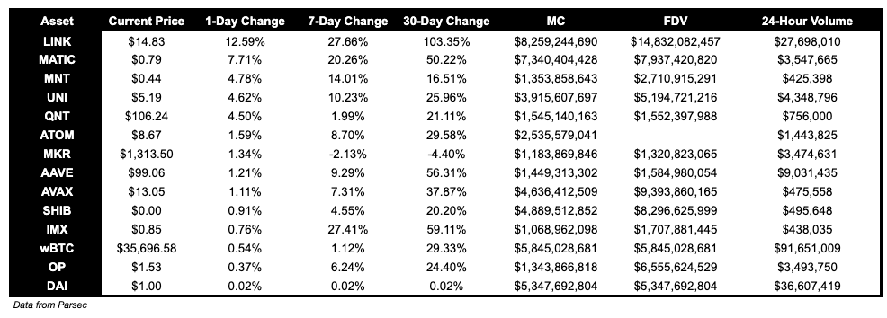 LINK is up 12.59% today. MATIC continues to show strength and is up 7.71%.