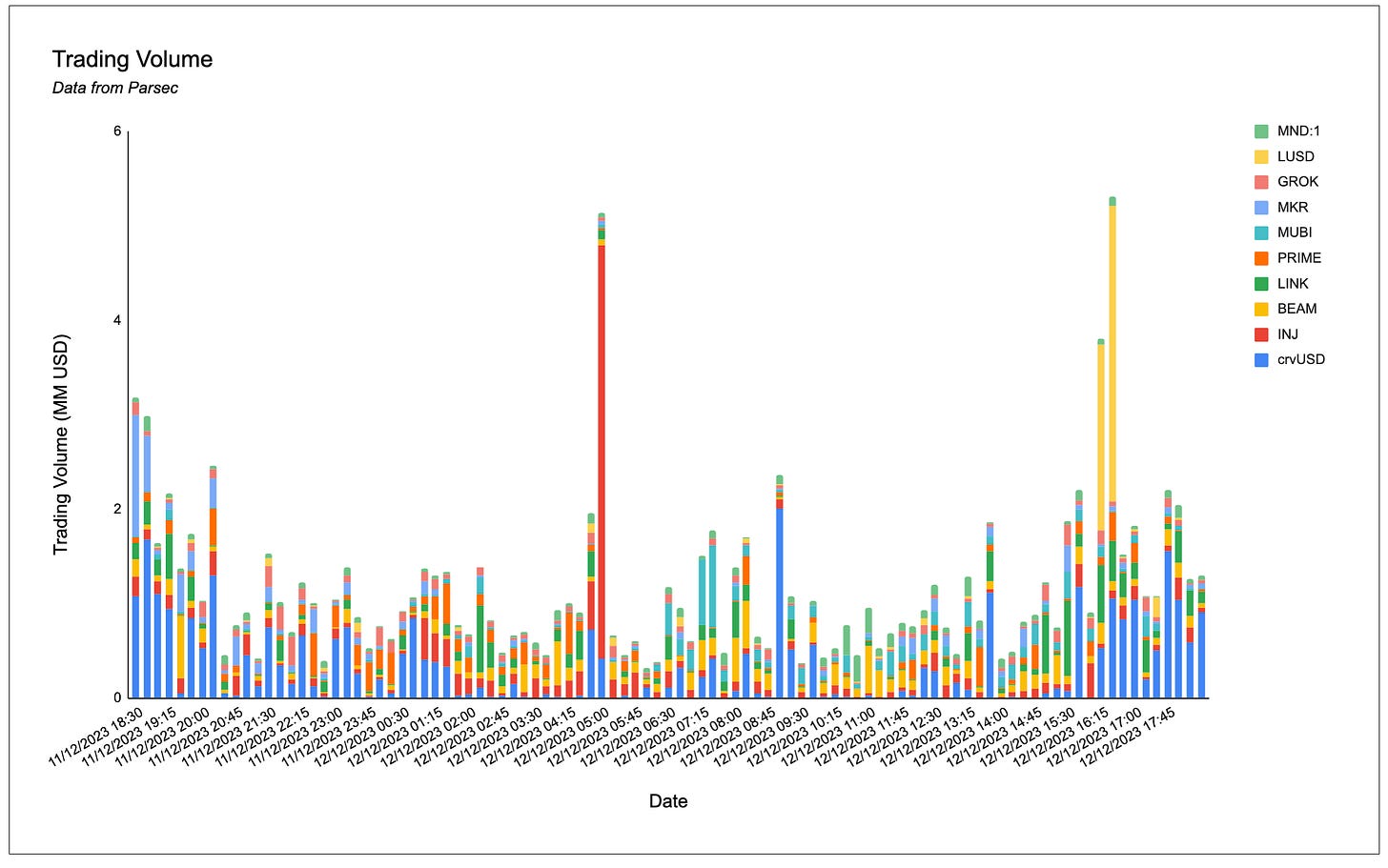 crvUSD, INJ and BEAM dominated onchain volumes.