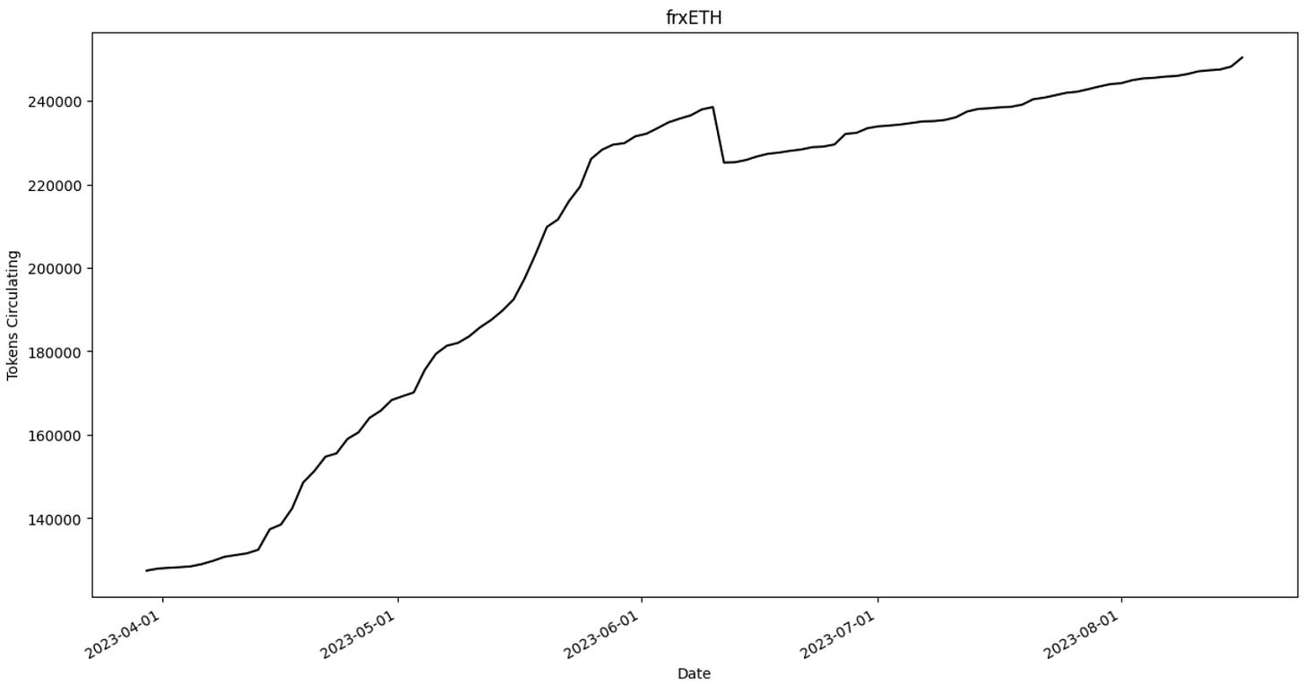 frxETH surpasses 250,000 frxETH in circulating tokens. Earlier on this week a large number of frxETH were placed into the sfrxETH token to earn staking yield.