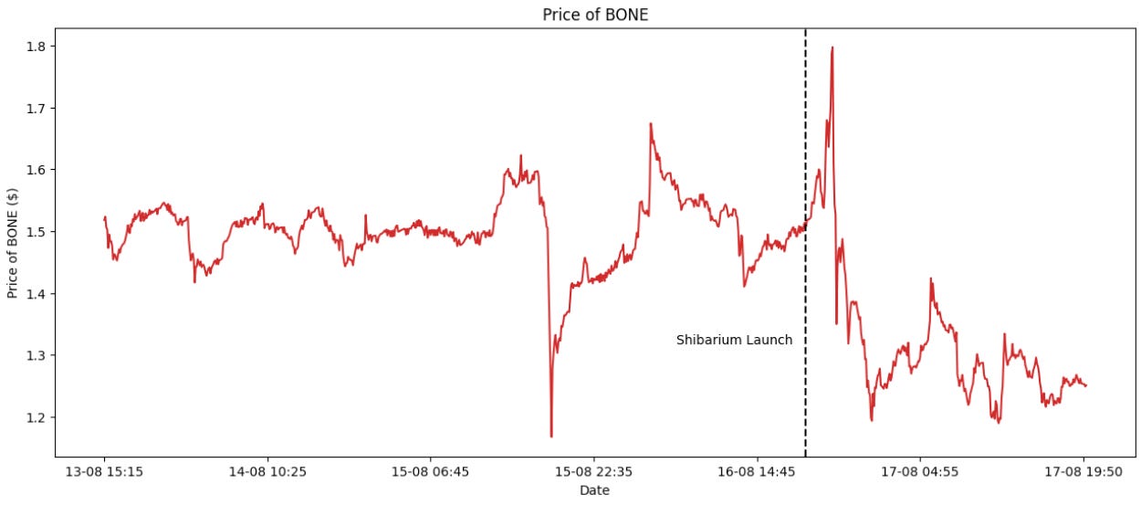 Post the launch and with the bridge issues, the price of BONE pulled back significantly after touching a peak of $1.80. It’s currently trading at $1.26.