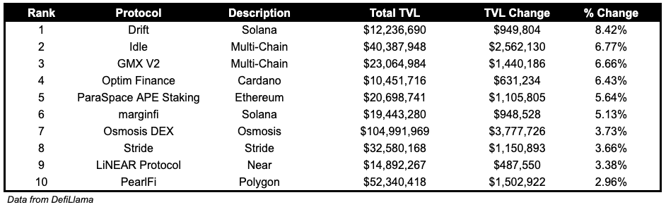 GMX V2, perpetuals on Arbitrum, TVL grew by 6.66%.