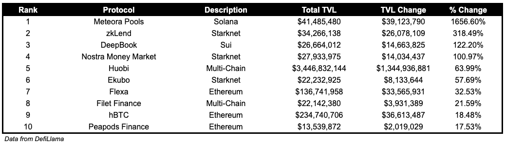 Meteora Pools, Solana Liquidity protocol founded by the same team behind Jupiter, TVL grew by 1656%.