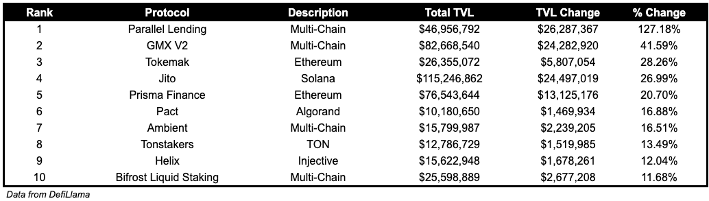 Parallel Lending, multichain lending, TVL grew by 127.18%.
