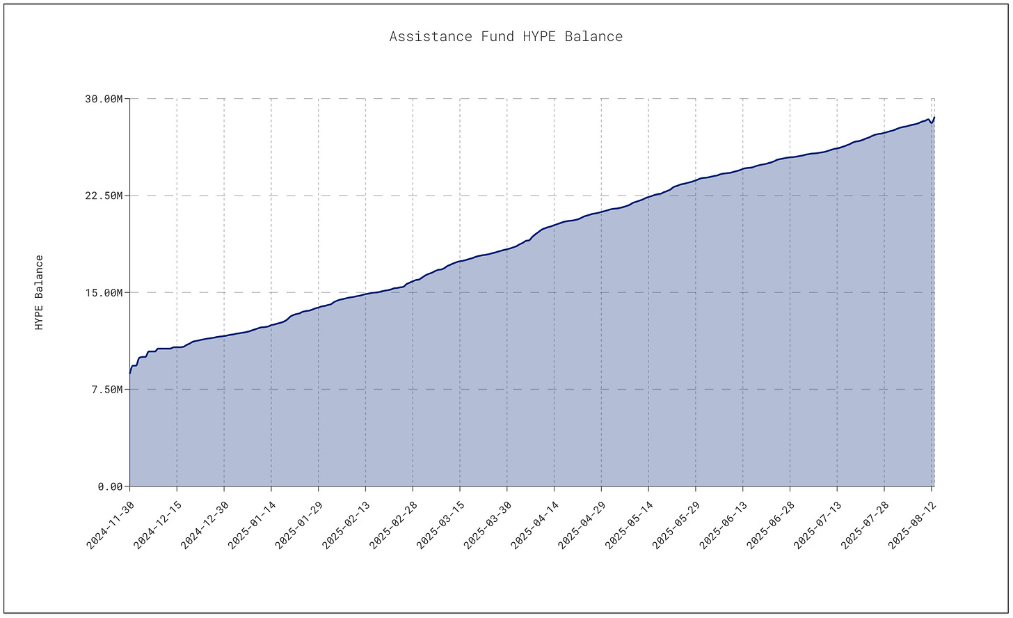The HYPE assistance fund now holds 28.64M HYPE ($1.3B USD) or 8.58% of circulating supply.