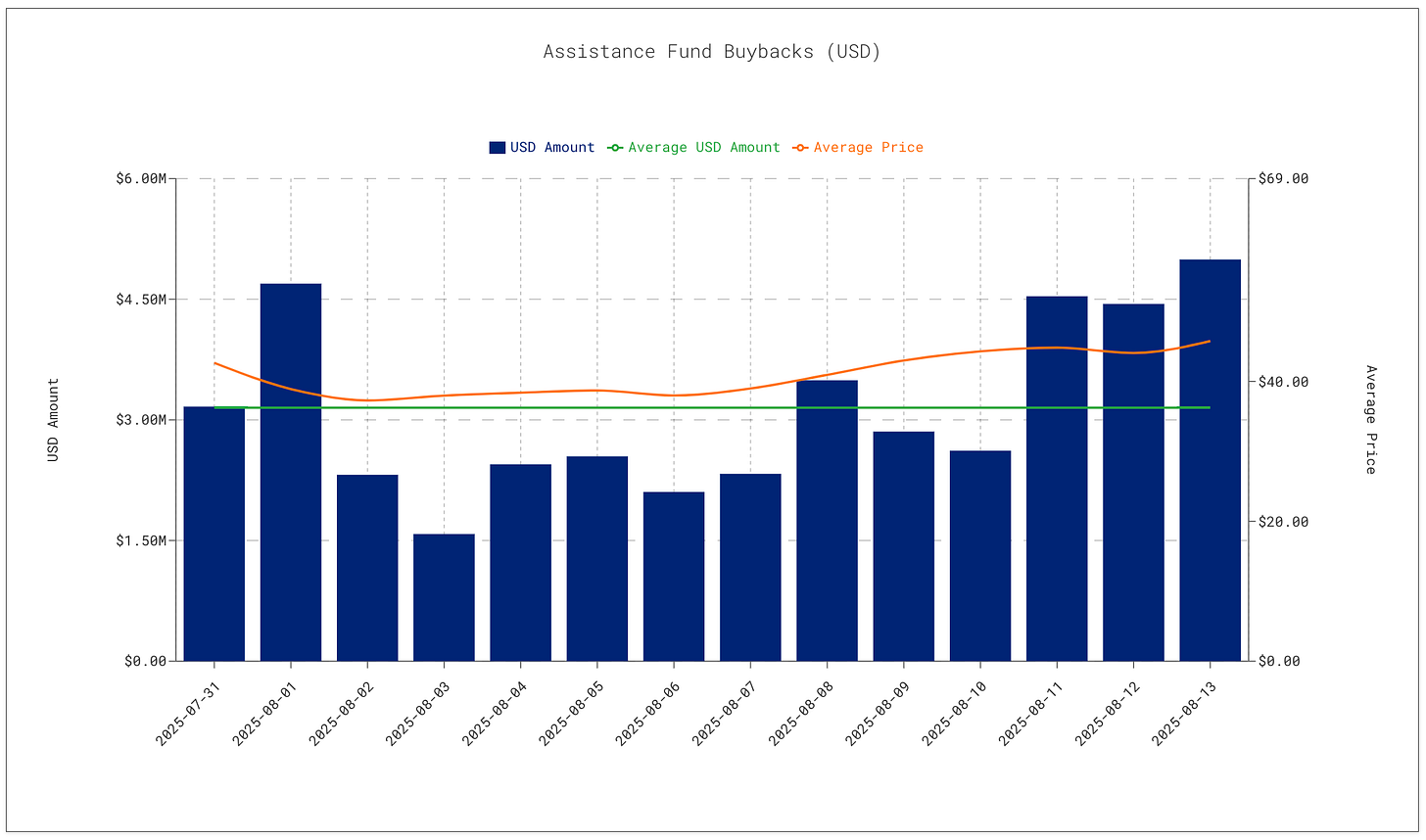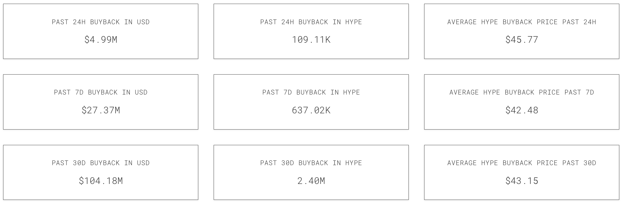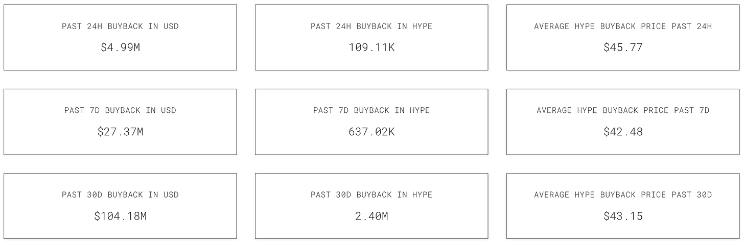Over the past month, the AF has bought back 2.4M HYPE ($104.18M USD), at an average price of $43.15 USD.