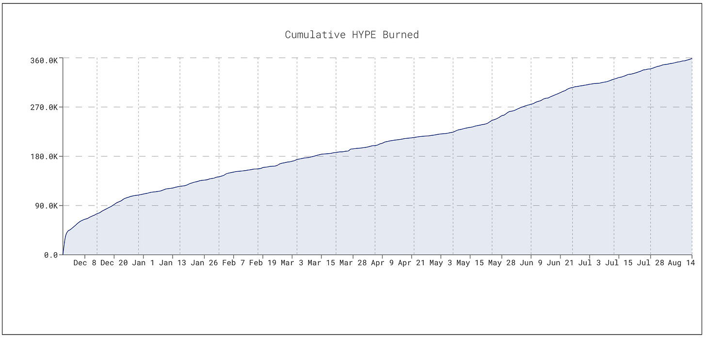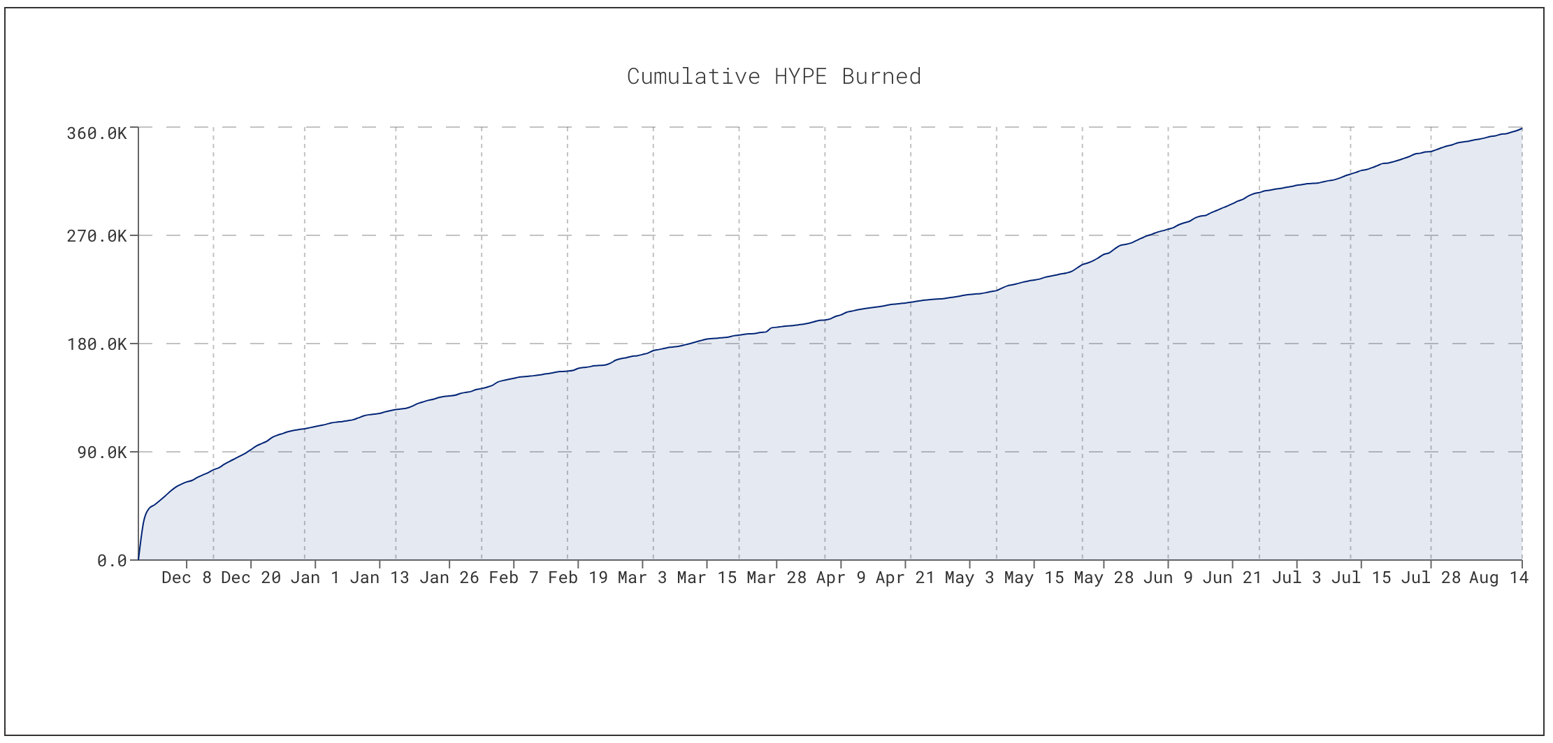 The native spot and perpetual order books utilize the same volume-based fee schedule for each address. However, fees collected in non-USDC HIP-1 spot tokens are burned. HYPE/USDC spot volume therefore directly results in the permanent burning of HYPE. Since inception, 360K HYPE has been burned