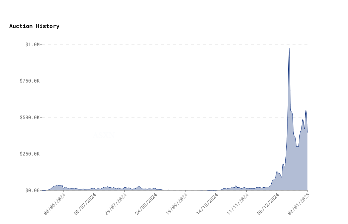 After peaking at just under $975,746.79 for the GOD ticker, Hyperliquid auction costs have retreated to the low-to-mid six-figure range. Recent ticker auctions have primarily stemmed from Hypurrfun launch fundraising efforts.