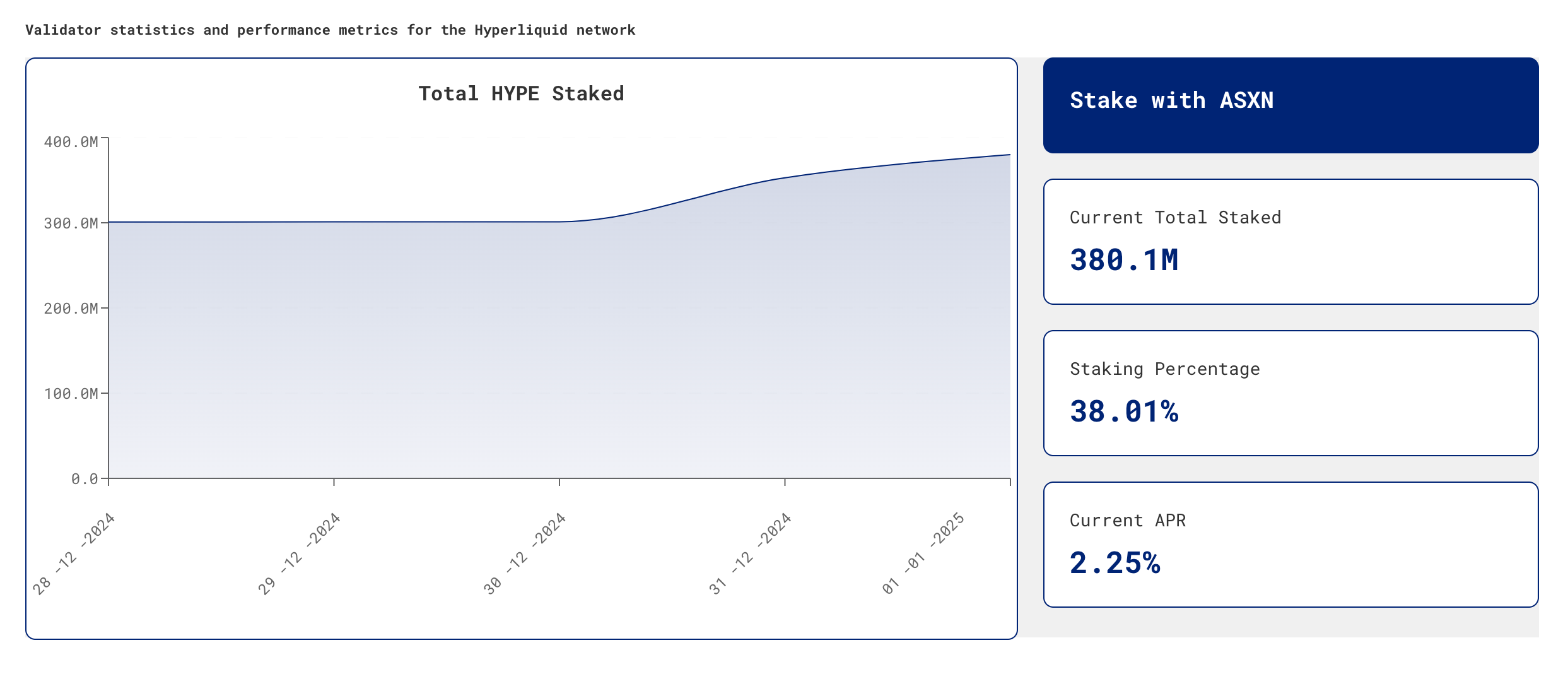 ASXN was selected as a genesis mainnet validator & has since accumulated more than 4.1M in HYPE staked (approximately $98M).